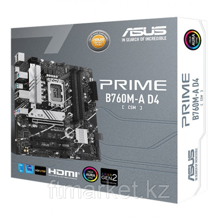 Сист. плата ASUS PRIME B760M-A D4-CSM, B760, 1700, 4xDDR4, 3xPCI-Ex16, 2xM.2, 4xSATA, DP, 2xHDMI, 2.5Gb Ethernet, BOX